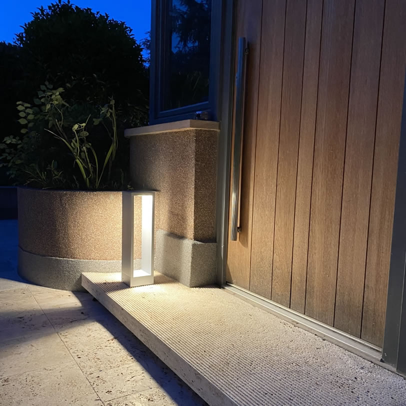 Kube, is an outdoor LED light bollard characterized by thin geometries and unexpected elegance. For gardens and pedestrian entrances in an effect of full and empty light.