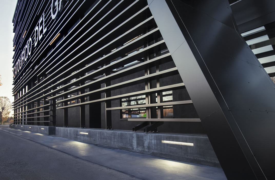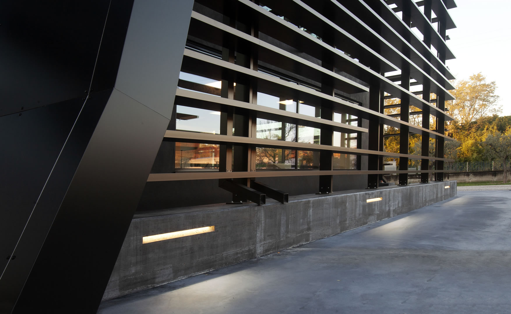 “The light blade comes from the concrete. When it’s off, it disappears. No artifice, just a void in the concrete with brutal and magic inspiration: actually a technical prodigy, directly cast into the concrete, the product of a sophisticated and invisible genius to fuse architecture and light in a natural way”.