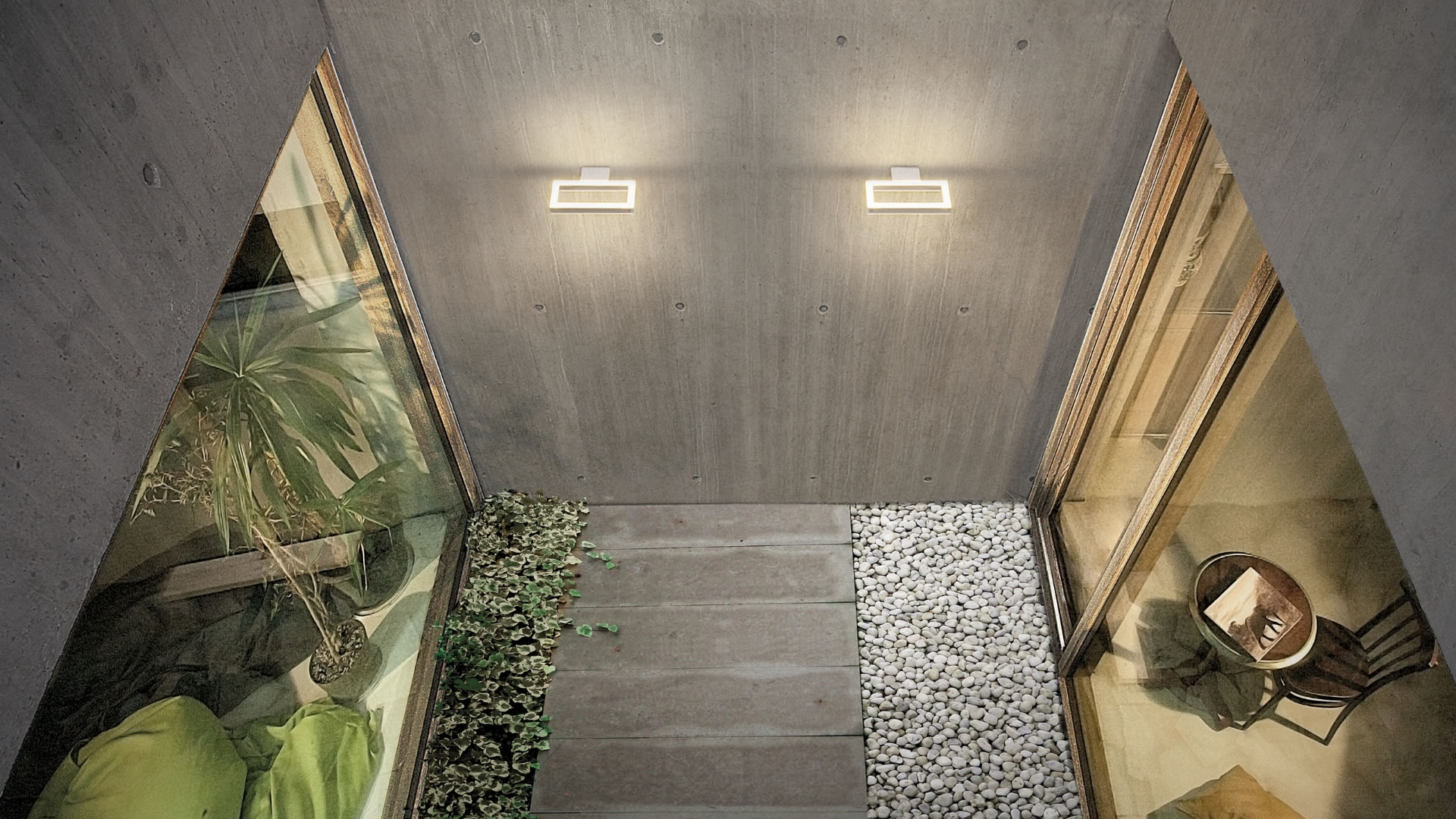 Trim, LED outdoor wall light with square and essential lines, where the frame of the luminaire becomes a perfectly distributed indirect light source.