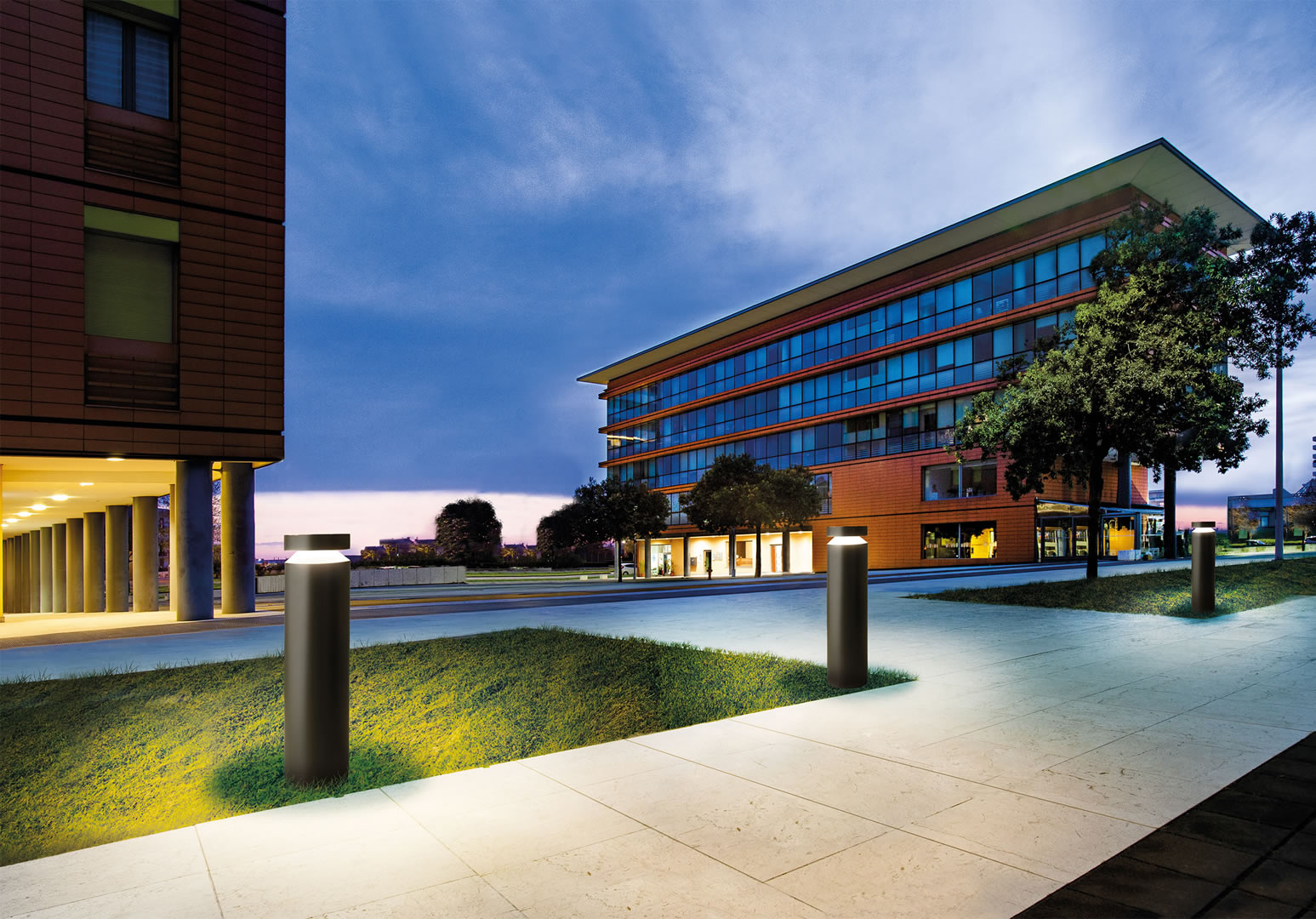 Tonight outdoor LED light bollard, ideal for urban and residential environments, uniform horizontal lighting and high visual comfort.
