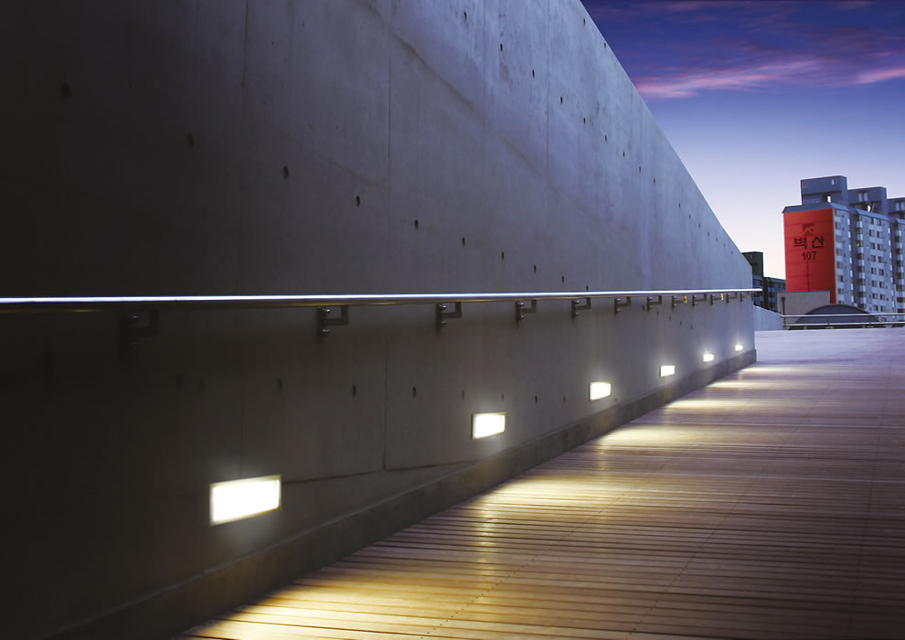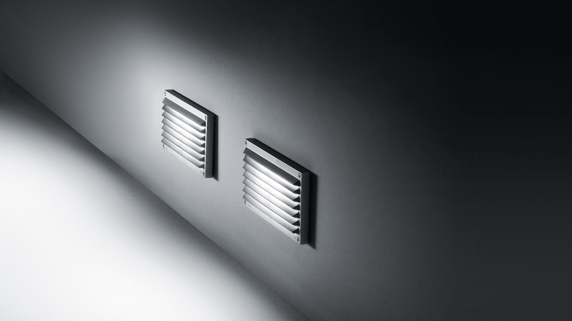 Brique is a recessed wall luminaire in rectangular, square and round shape, each available with a front ring, for a diffused light effect, or with a front grille for a screened light directed downwards. Brique is suitable for lighting residential and public areas.