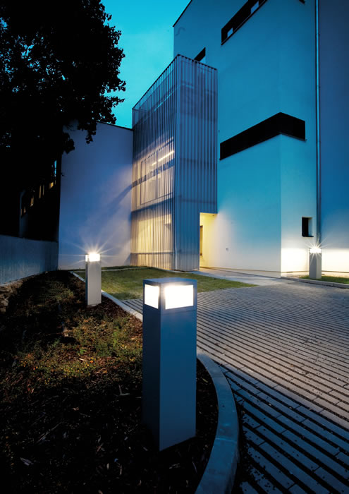 Cubiks, outdoor LED lighting bollard, strong and essential. Perfect for private or public areas, squares and parks.
